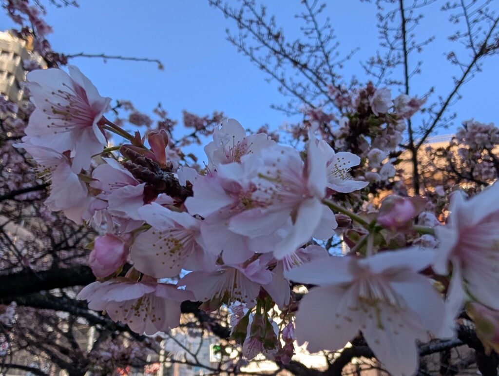 ぶらり旅というか、目的もなくブラブラ歩こうってことで。そしたらまさか、1月に咲くサクラ「熱海桜」が開花シーズンを迎えていました!!糸川(いとがわ)っていう熱海の中心を流れている小川沿いに綺麗に並んで咲いていましたよ♬まだこれからが見ごろな様子。